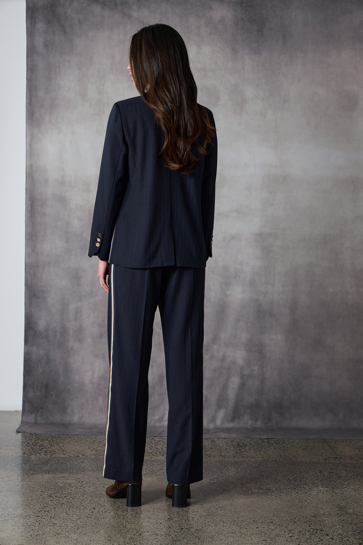 Introducing the Brigade Jacket, a sophisticated longlined blazer crafted from Wool blend fabrication. Its relaxed fit exudes effortless elegance, while the stripe tape down the side seam, mismatched buttons at the front closure and sleeve cuffs add a touch of modern flair. Fully lined for comfort and durability,this versatile piece pairs perfectly with matching trousers or elevates any outfit effortlessly.